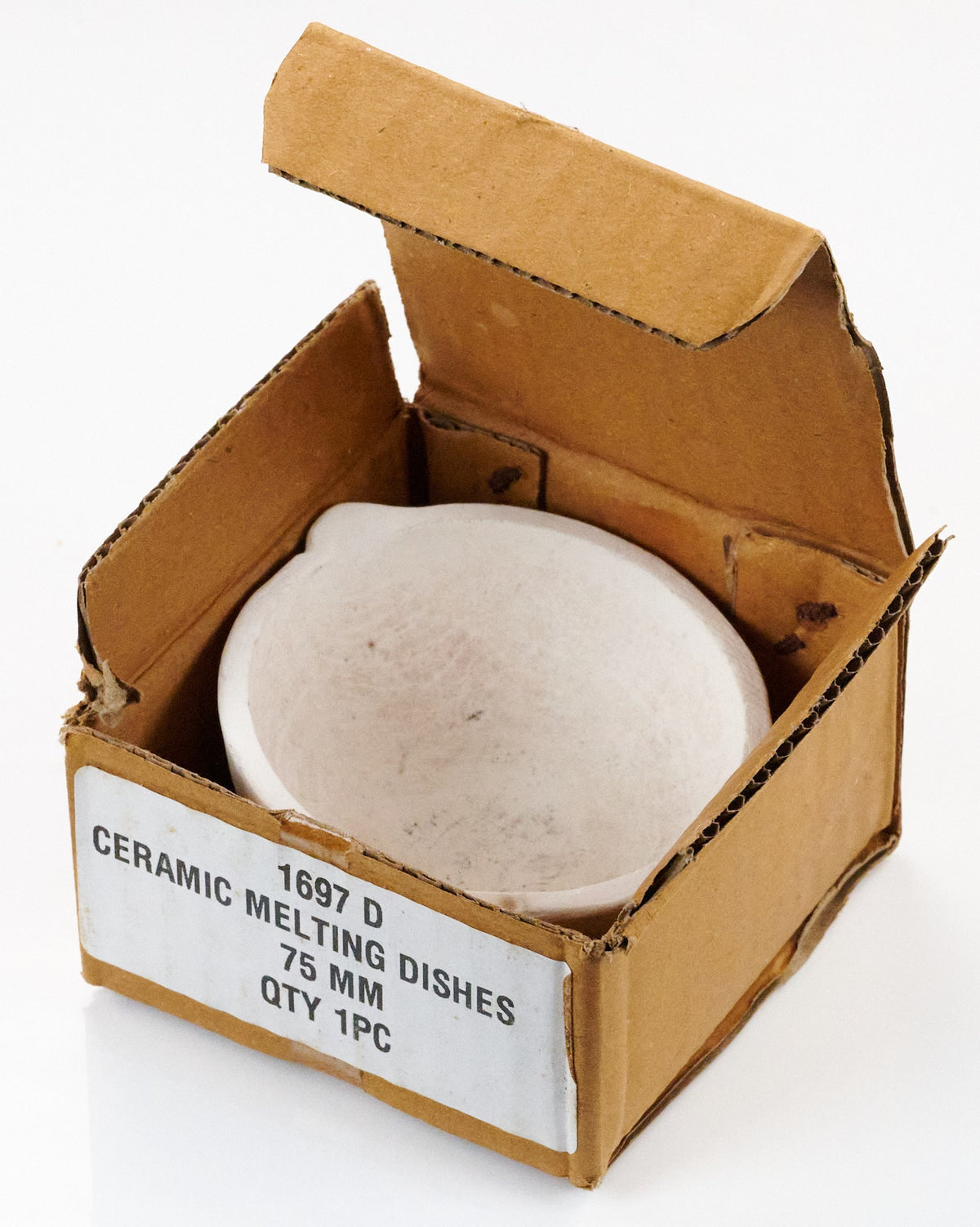 Large 95mm ceramic melting dish for metals with a pouring side.