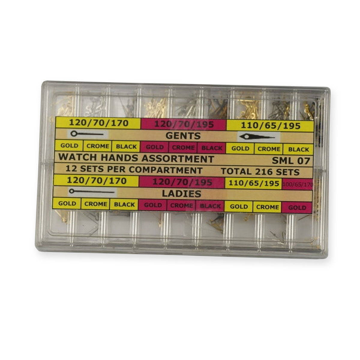 Watch hands assortment 216 sets of hour, minute & seconds hands.