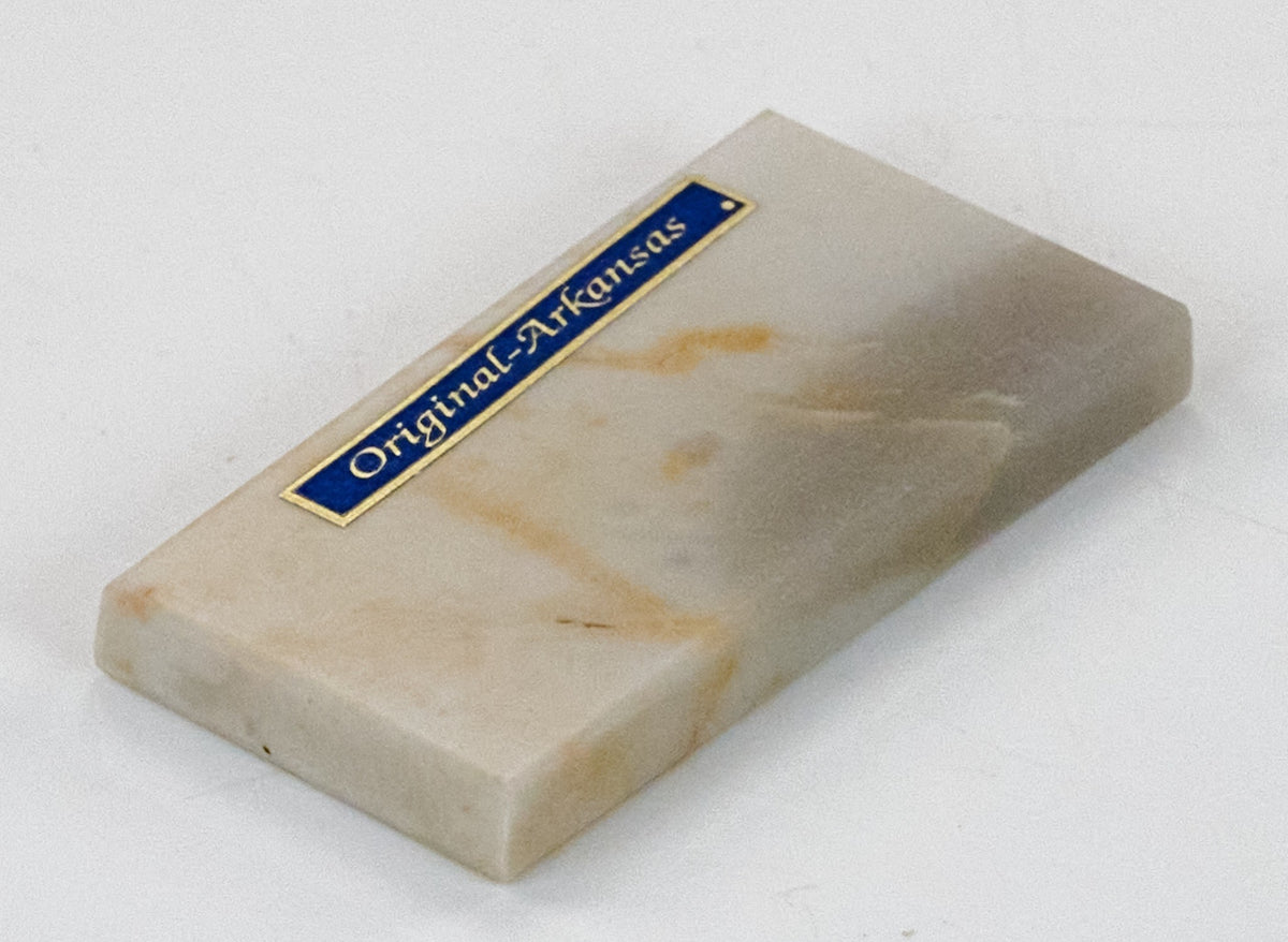 Genuine Arkansas oil stone, a very hard stone for sharpening tools.