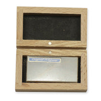Arkansas oil stone, a very hard stone for sharpening tools, comes in wooden box.