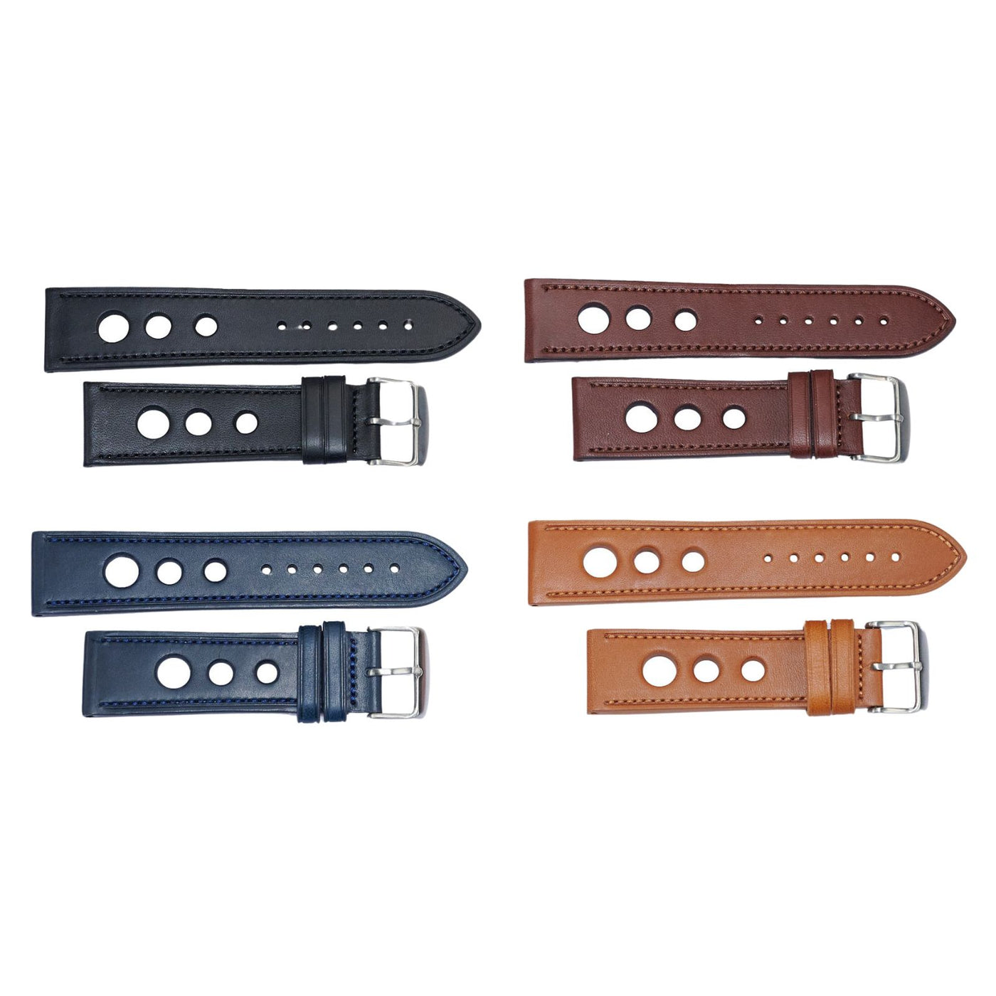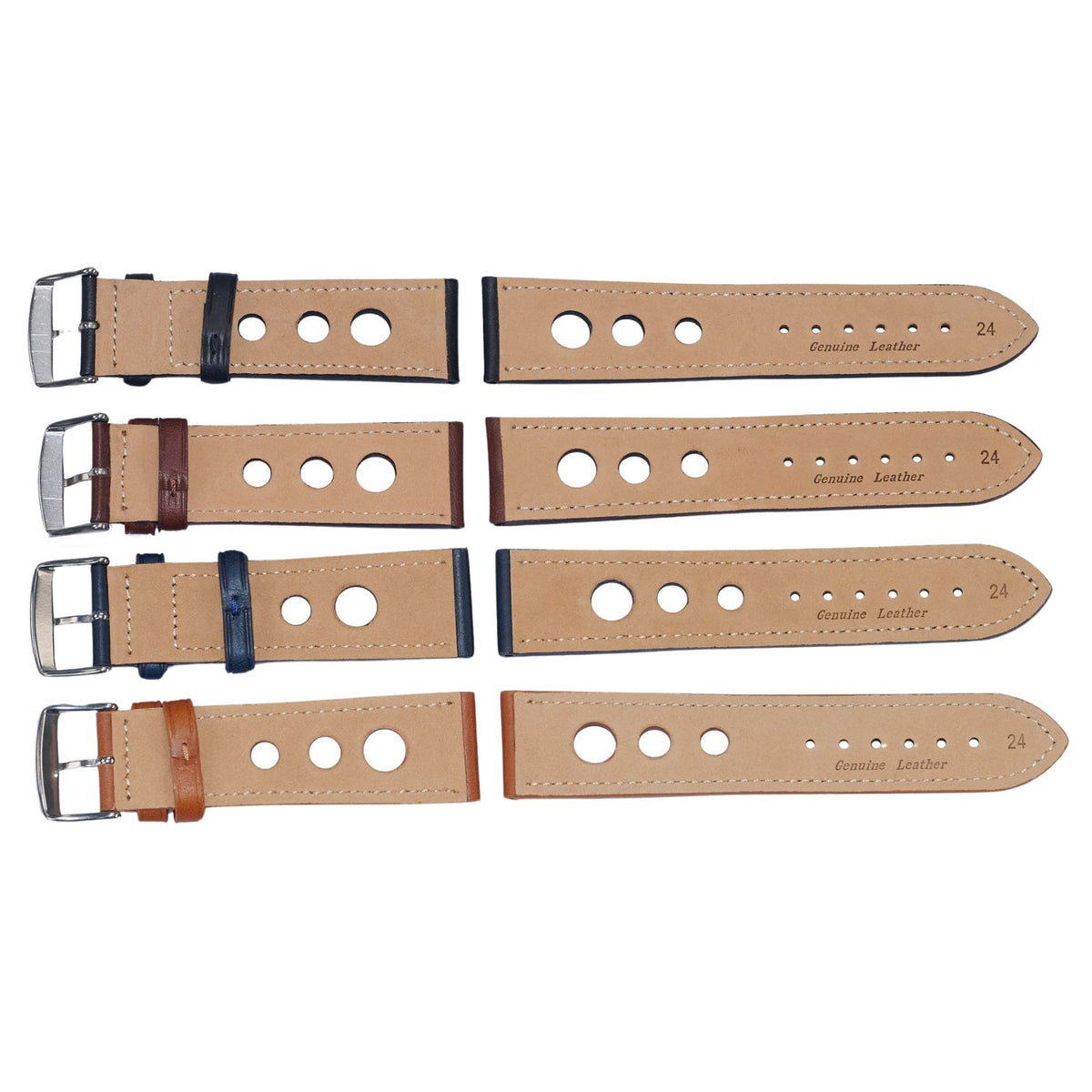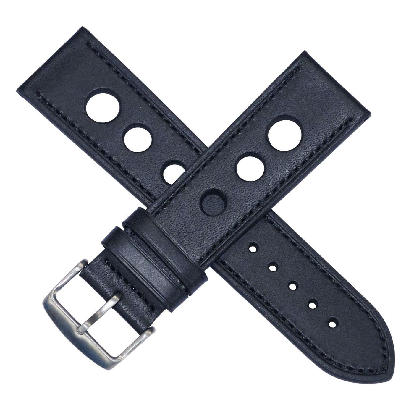Good quality leather rally watch strap with same colour stitching.