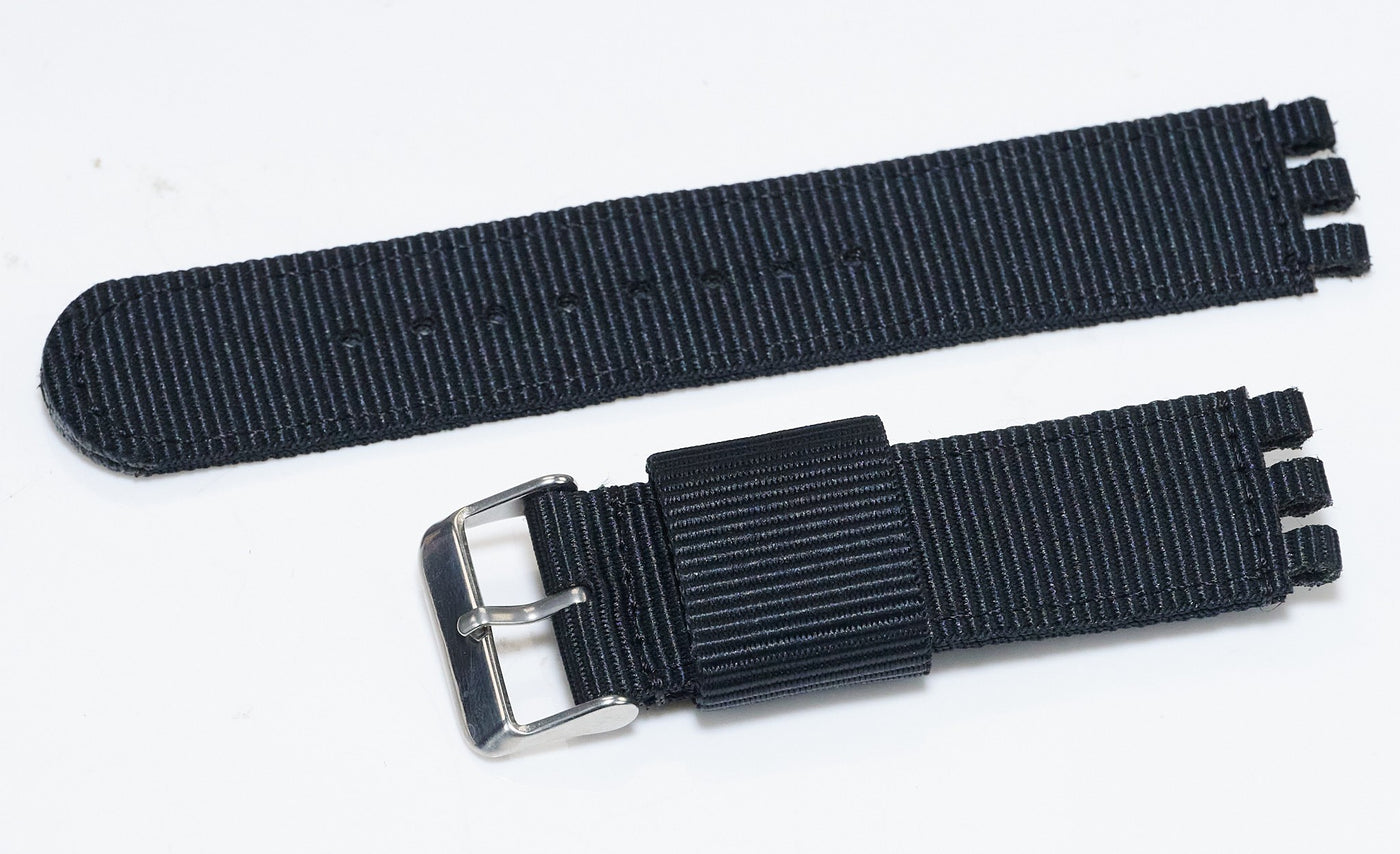 Black Nylon Canvas Replacement For Swatch Watch Strap Bands.