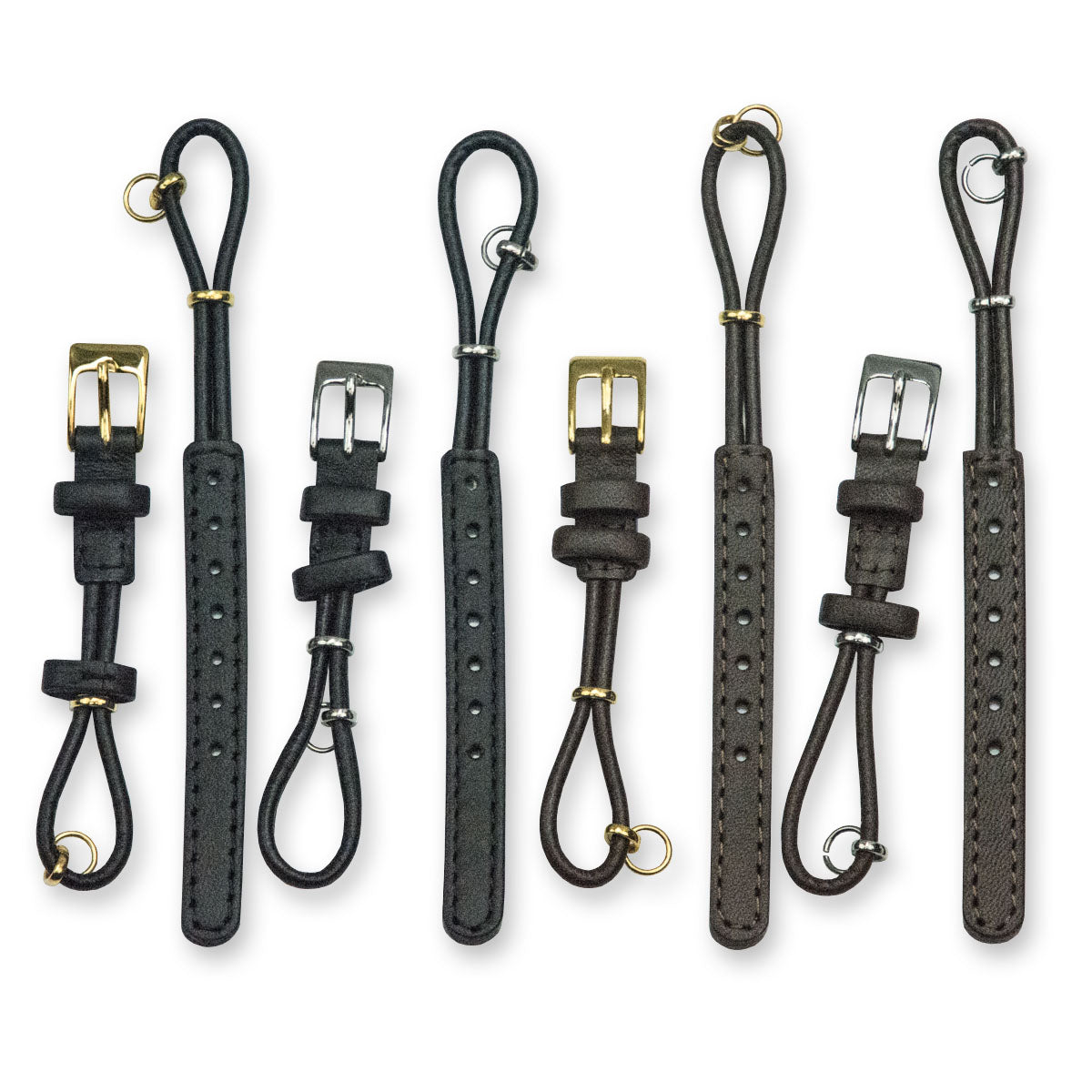 They come in black or brown, and have either stainless steel or gold plated finish buckle.