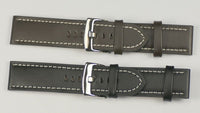 Mens watch strap SMOOTH GRAIN white stitching black brown leather 18mm - 24mm