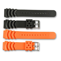 Available in black or orange and in sizes 18mm 20mm 22mm, please note these dimensions are where they fit at the lugs, they are wider as you can see in photo.