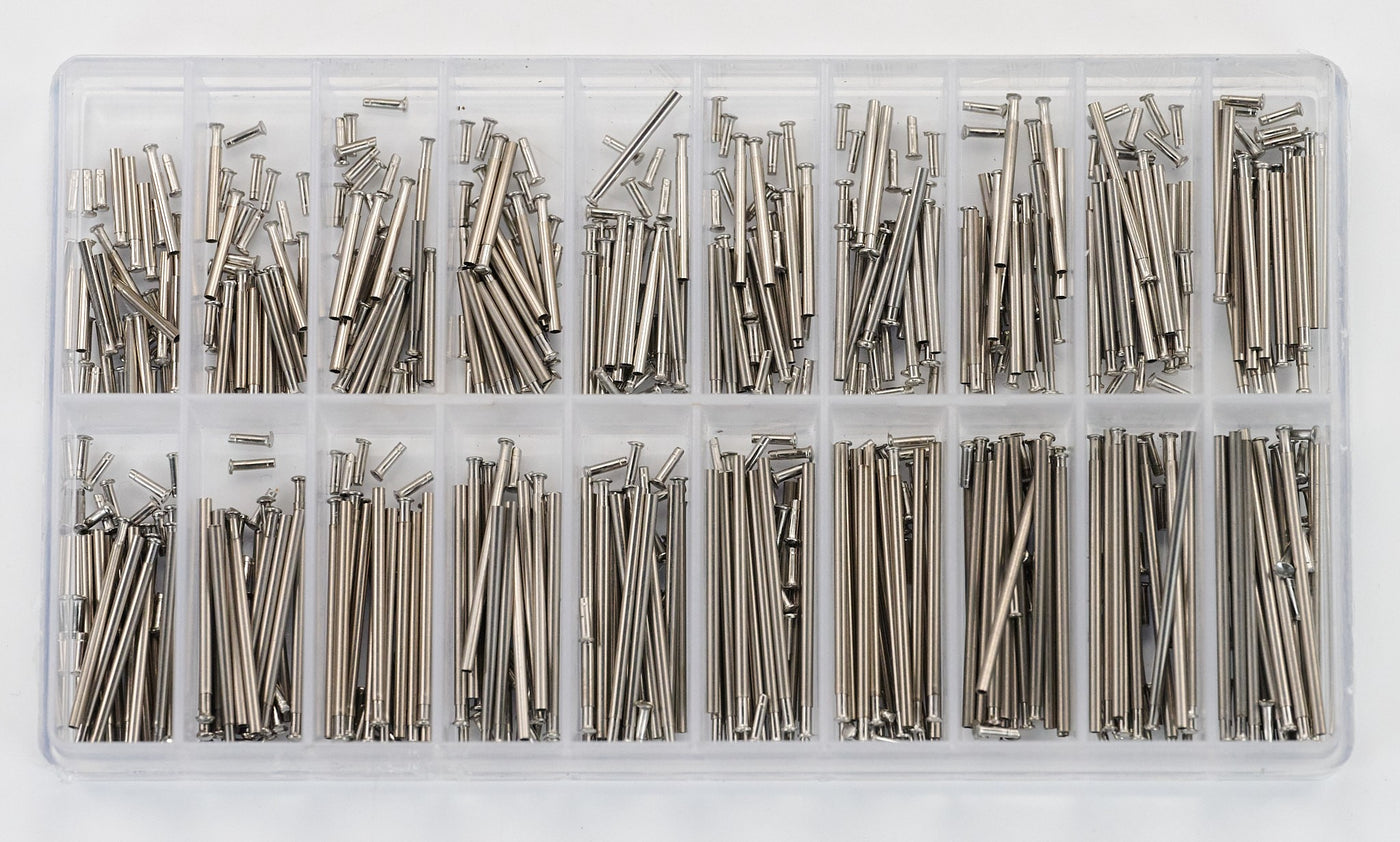 Steel pressure or friction fit pins for clasps, buckles, straps or bracelets links.
