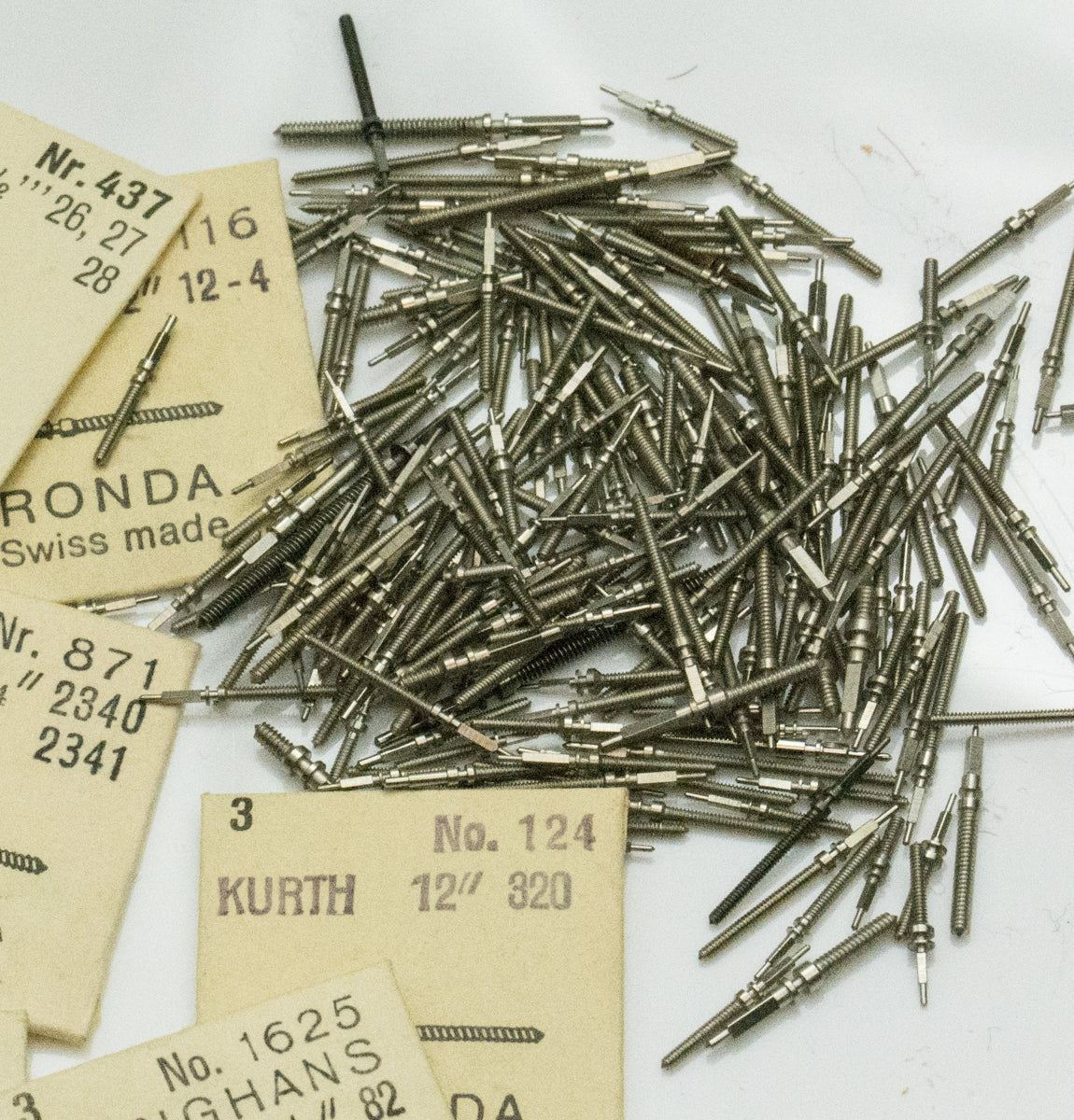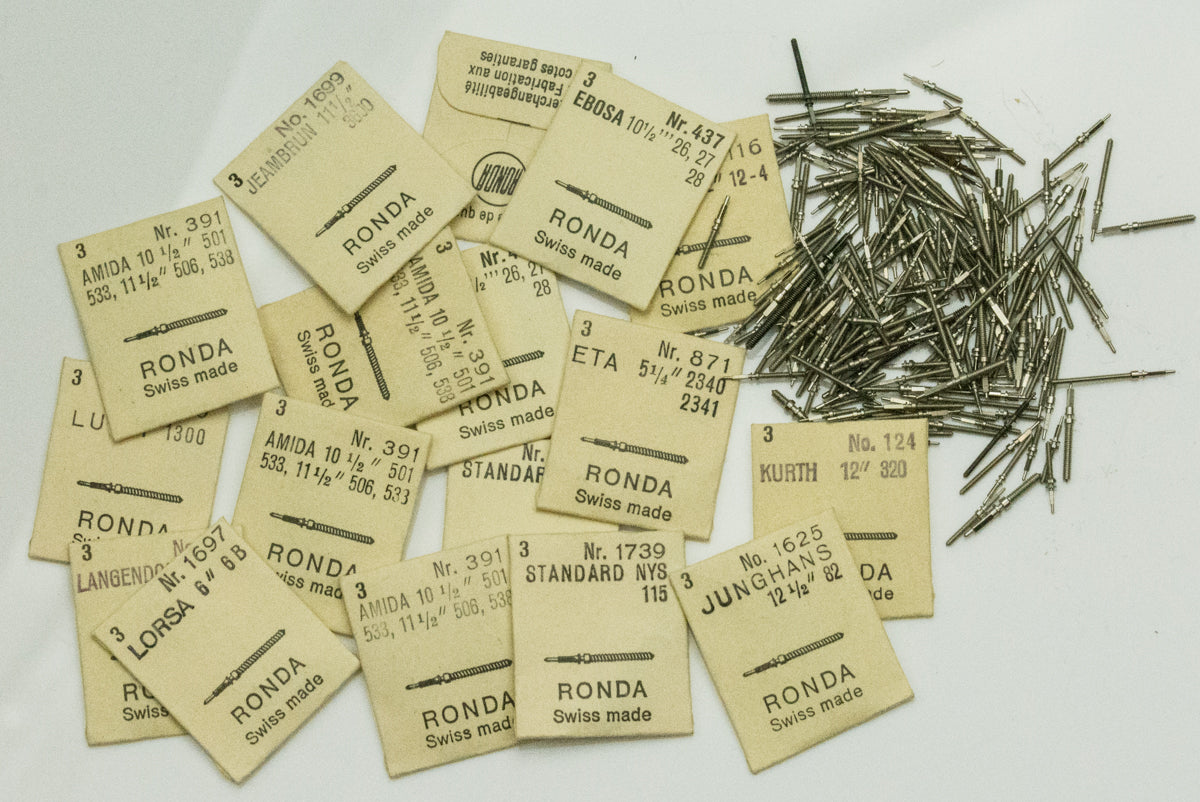 250x Approx mixed watch stems for mechanical watches.