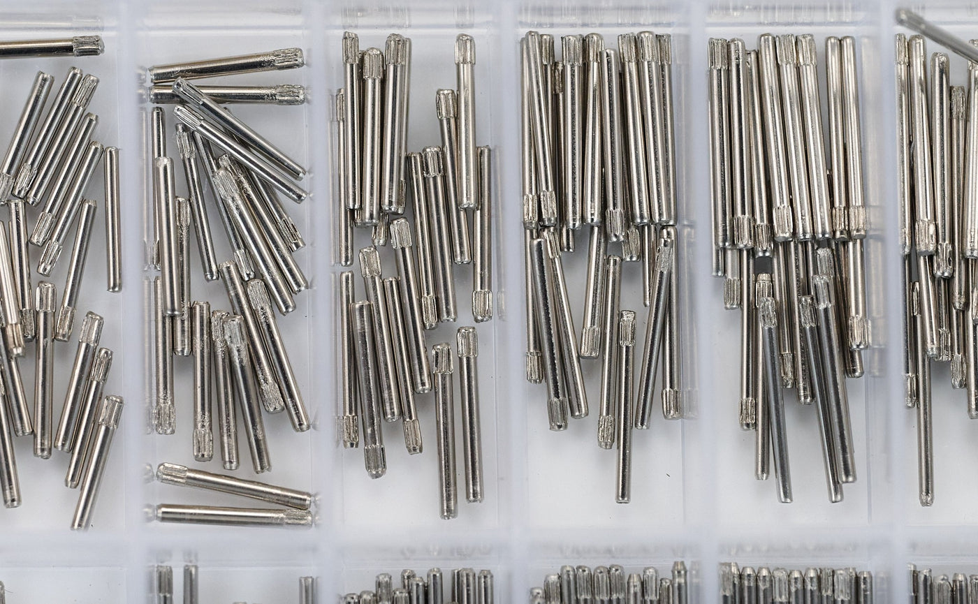 Box of 400x knurled link pins to fit Rolex bracelets and similar styles.