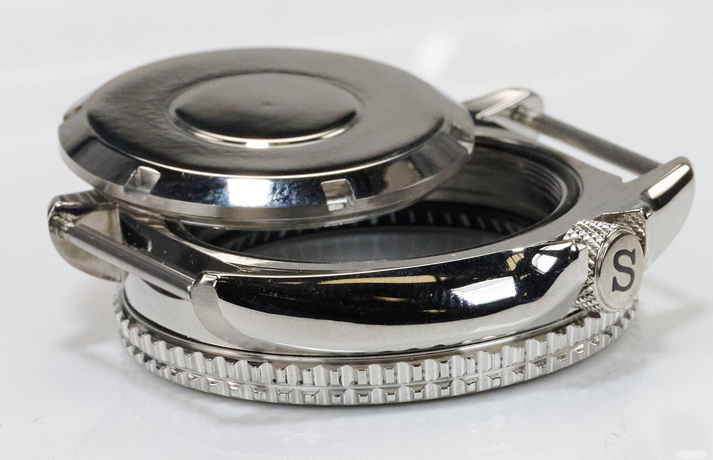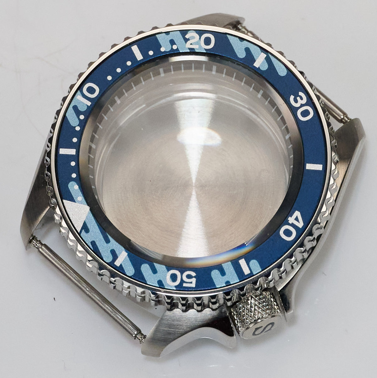 Blue with camouflage pattern. 42mm High-grade 316L stainless steel case for custom build watch, compatible Seiko movements NH35 & NH36