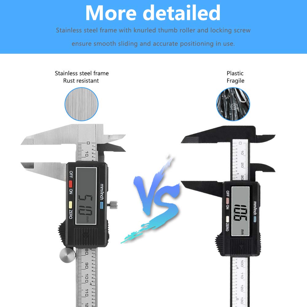 Can take measurements in inches or MM. Measure up to 150mm or 6 Inches.