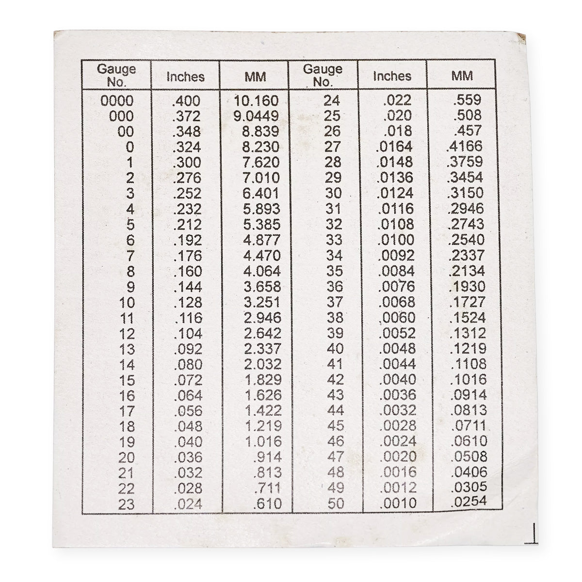 Also so comes with measurement sheet as seen in photo, converting the gauge number to millimeters and inches.
